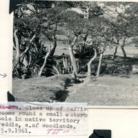 - Caption "Close up of Kaffirbooms around a small waterhole in native territory Peddie, s. of Woodlands. 05-09-1961."