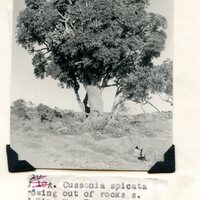 - Caption "Cussonia spicata growing out of rocks in King Wms Town, the season for its survival. Grasssveld surrounds. June 1961."