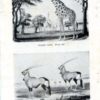 - Caption "Above: Giraffe Card. Price 9d. Below: A limited number of Gemsbok produced last year is still available. African Wild Life. p. 239. Vol. 12. No. 3. Sept 1958."
