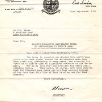 - Caption "Divisional Council of East London. Enquiry regarding Kaffirboom trees at Water-holes in Peddie Area. 21-09-1961. Received 03-10-1961."