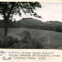 - Caption "Looking across Upper Kubusie valley towards Mt. Kubusie, under a Black Ironwood tree. 1959."