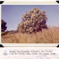 - Caption "Nuxia floribunda, Vlier, in flower beside Maden Dam, King Williams Town. 31-05-1960."