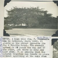 - Caption "A huge wild fig, F. natatensis? In Bathurst, Sept. 1963. It stands on the corner opposite the Pig & Whistle Hotel. The overall spread is 54 yards one way and 47 the other, yet there is only one main stem It is amaing that the lateral branches can remain in place without splitting at the main stem. Said by daughter of man who planed it to have been planted as a truncheon in 1918."