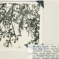 - Caption "Heavy crop of wild figs on the big tree opposite the Pig & Whistle Hotel, Bathurst. Sept. 1963. They were fed over by large flock of black-bellied and Redwing Starlings. Ficus ceratosoma."