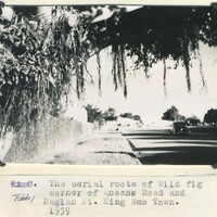 - Caption "The aerial roots of Wild fig corner of Queens Road and Raglan St. King Wms Town. 1959."