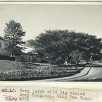 - Caption "Very large Wild fig beside Grey Hospital. King Wms Town. 1959."