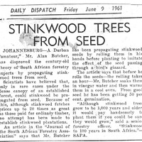- Caption "Stinkwood trees from seed. Daily Dispatch, Friday, June 9, 1961."