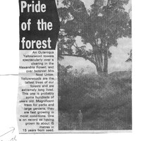 - Caption "Pride of the forest. An Outeniqua Yellowwood tower spectacularly over a clearing in the Alexandria Forest, and over botanist Mrs Noel Urton. Yellowwoods are the tallest trees of our forests and are extremely long lived. This one is probably some hundreds of years old. Magnificent tees for parks and large gardens, they are fast growing in moist conditions. One is on record as having grown to about 15 metres in 15 years from seed. E. P. Herald. 27 Aug. 1980."