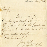 - Letter from James Veitch & Sons, on behalf of the Royal Exotic Nursery, to Walter Jardine regarding a bill of landing for Cambrians sent, 1869