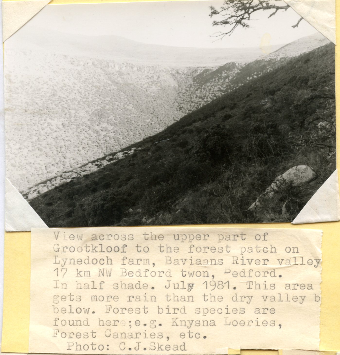 Part of Forest recession: Grootkloof, Baviaans R. Valley, Bedford E. Cape