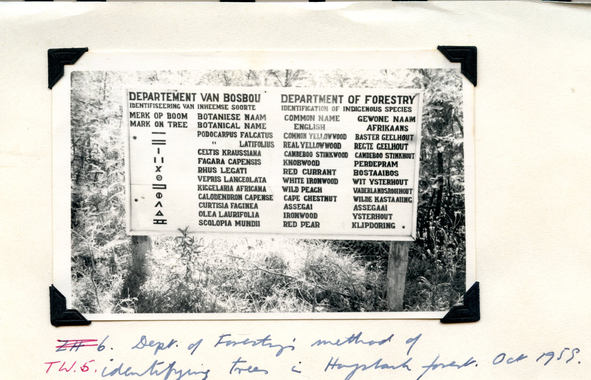 Part of Department of Forestry identification of indigenous species - Hogsback Forest