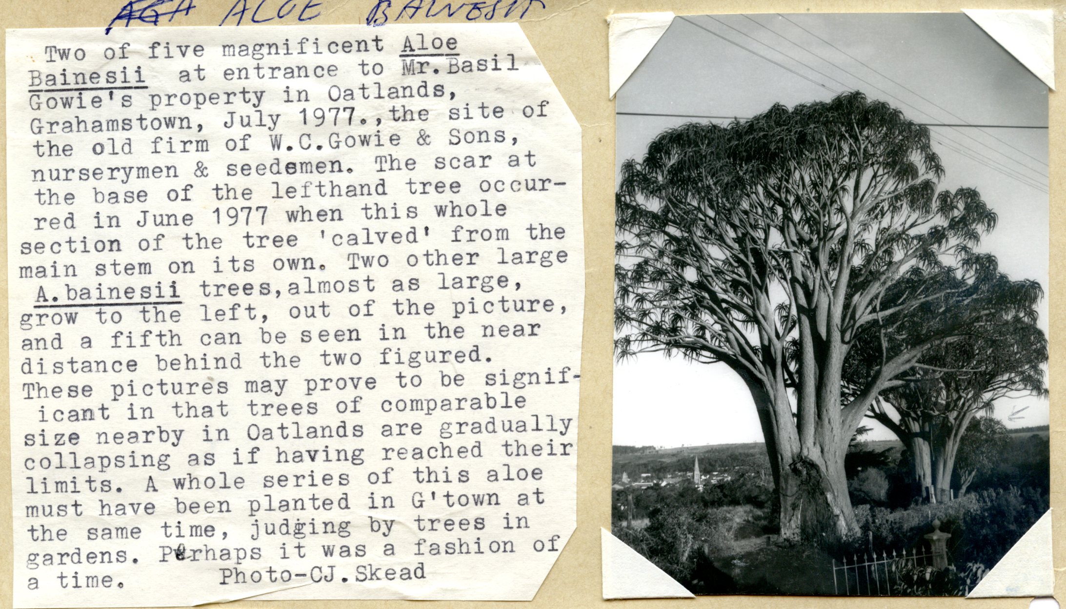 Part of Aloe bainesii in Grahamstown, 1977