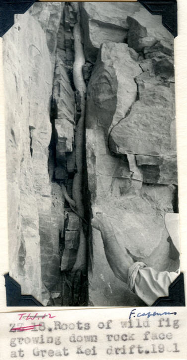 Part of Roots of wild fig grows down rock face at Great Kei drift, 1961