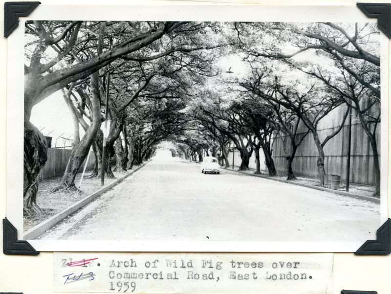 Part of Arch of Wild Fig trees over Commercial Road, East London, 1959