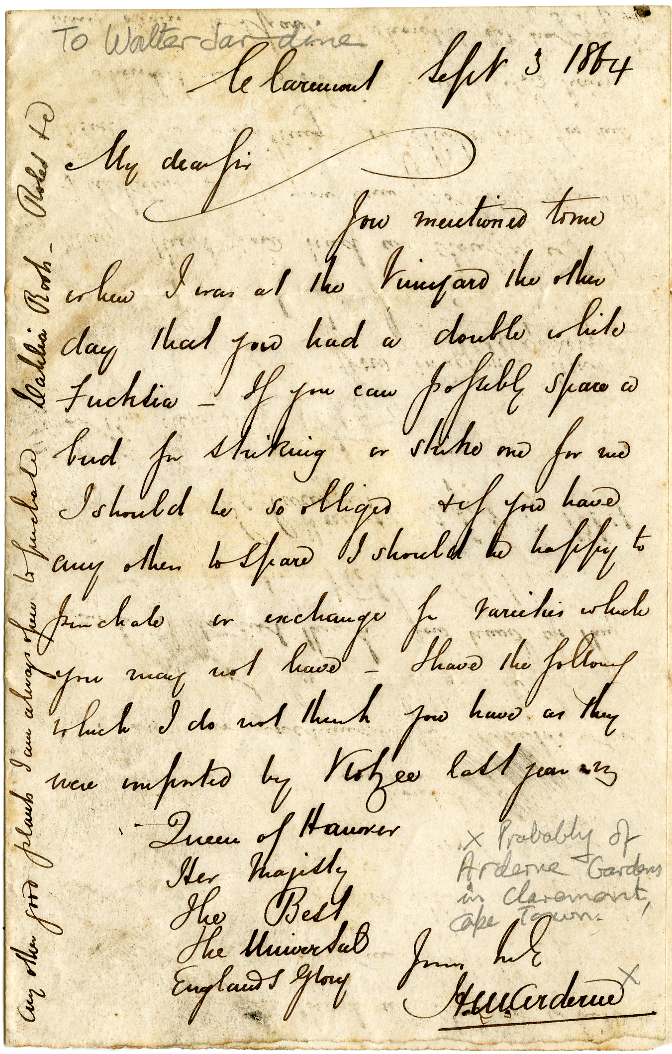 Part of Letter from HM Arderne to Walter Jardine, 1864