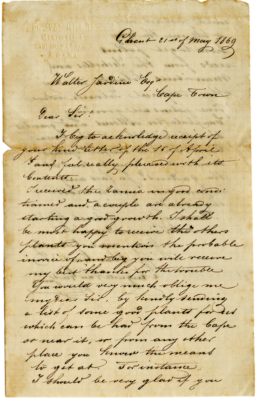 Part of Letter from Auguste van Geert to Walter Jardine, May 1869