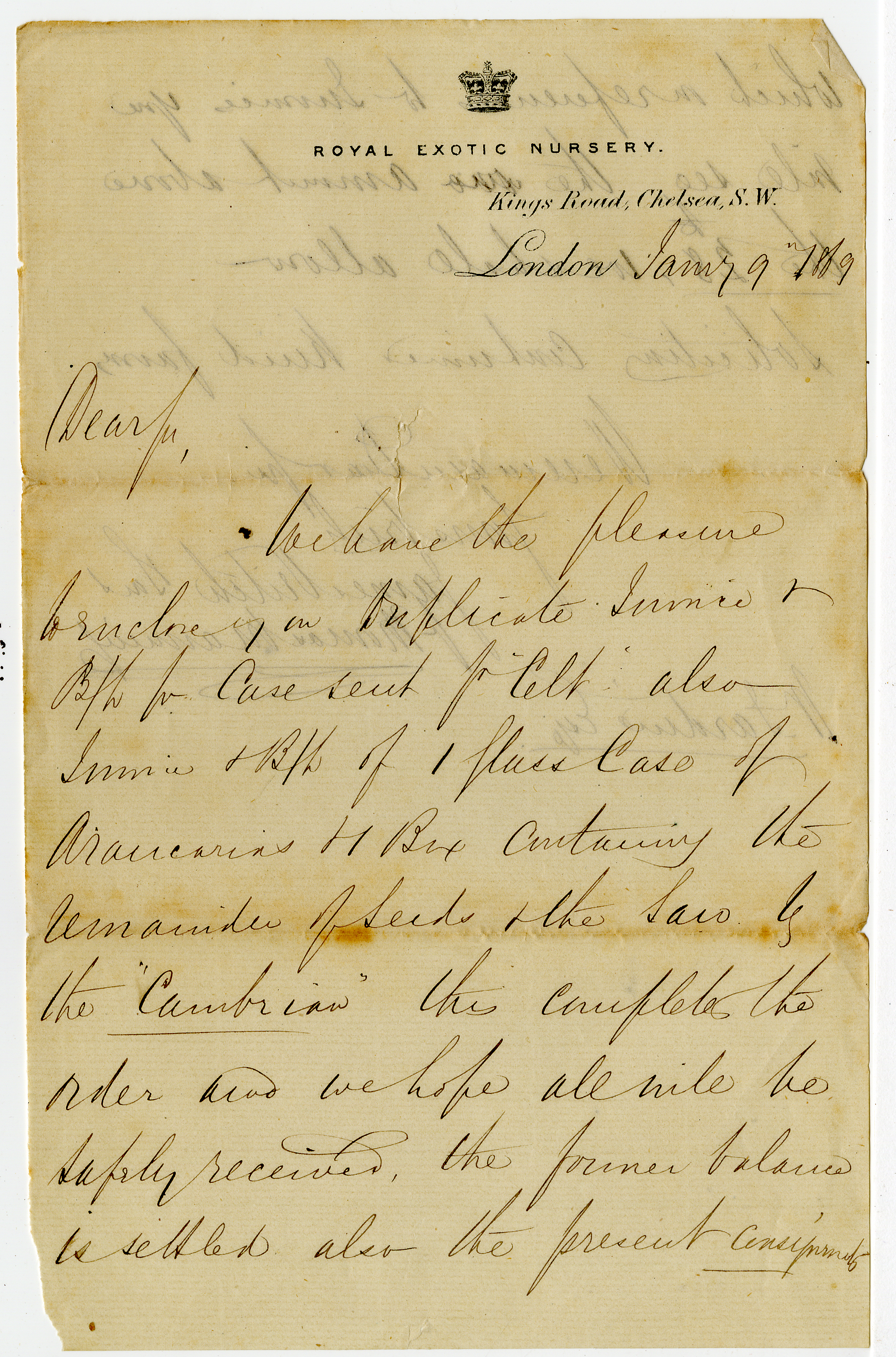 Part of Letter from James Veitch & Sons (Royal Exotic Nursery), with an invoice, to Walter Jardine, January 1869