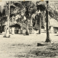 A "Settler" and his typical residence under Tropical Palms, Inhambane