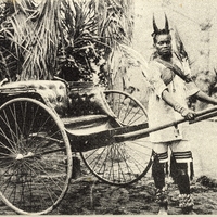 "Natal Cabby", the versatile good-homoured Zulu and his Jinricksha (exceedingly popular mode of locomotion)