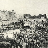 The early morning produce market, shewing the enormous number of waggons and oxen used to convey 'supplies' to the important centre, Johannesburg