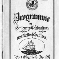 Programme of the centenary celebrations in commemoration of the arrival of the 1820 British settlers of Albany, to be held at Port Elizabeth on April 9th and at Grahamstown on April 11th 1921