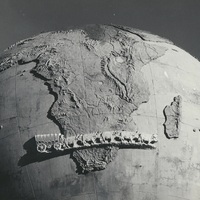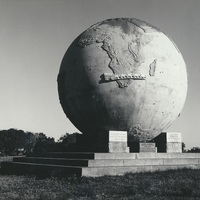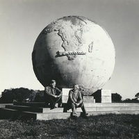 View of the Karel Landman Monument with F G Butler and Ken Robinson seated on the steps
