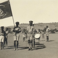 St Andrews Day - Pathfinder's marching band bearing a flag, 1930