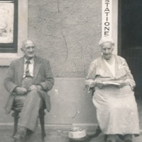 Unidentified elderly couple outside Alice Station -