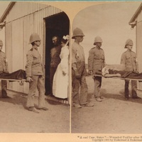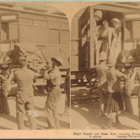 Major Russell and Sister Rose receiving wounded on hospital train at Orange River