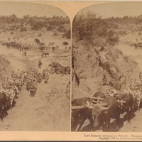 Transport teams and oxen watering in the Velch River - on the march to Pretoria