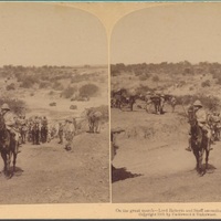 On the great march - Lord Roberts and staff ascending the north bank of the Zand River