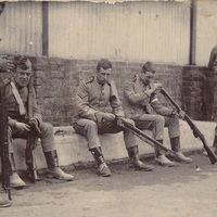 Soldiers sitting around a pot, Jeppestown, Johannesburg -