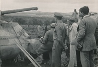Examining tank armaments - Tripoli Photographic album : containing photographs of Indian troops and members of an Indian press contingent, taken in the Middle East (including Iraq) and Italy during World War II, taken during a tour by a contingent of Indian Press correspondents, 1945, photographer unknown.