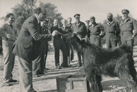 With a Punjab regiment mascot - Palestine Photographic album : containing photographs of Indian troops and members of an Indian press contingent, taken in the Middle East (including Iraq) and Italy during World War II, taken during a tour by a contingent of Indian Press correspondents, 1945, photographer unknown.