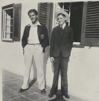 Guy and Jeffrey Butler outside Milner House, 1937 -