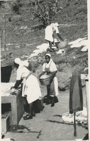 Hospital washing A photograph album showing views of buildings and people at St Michaels and St Matthews Missions in Keiskammahoek, South Africa.. This photograph is showing three African women, hospital workers doing laundry outside.