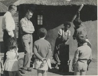 Eric Abbhah, Dean of Westminster with Dorah John Jane watching local women stamping mealies A photograph album showing views of buildings and people at St Michaels and St Matthews Missions in Keiskammahoek, South Africa.