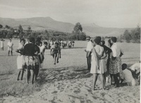 Sports Day at St. Matthews Mission School - spectators A photograph album showing views of buildings and people at St Michaels and St. Matthews Missions in Keiskammahoek, South Africa.. This photograph shows spectators watching sports event at St Matthews Mission during their annual sports day.