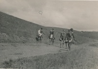 Men pulling horses in field Album relating to the Zulu people of Zululand in the Natal Province during the years 1930-31 and 1934, taken at various places, including Chads College, Ladysmith; Springfield, Mooirivier; the Leytown Pohams House ("Hemrock"), Nottingham Road; Umlazi Mission; Etalaneni; Kwamagwaza; on the way to Biyela : mainly photographs, some original, some photocopies, with descriptive text in some cases / photographer unknown. 50 Photographs in one album : b+w (some sepia), 22 cm x 10 cm or less.