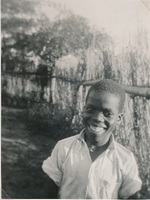 Gilbert in his Sunday shirt - Umlazi Mission, Natal, 1934 Album relating to the Zulu people of Zululand in the Natal Province during the years 1930-31 and 1934, taken at various places, including Chads College, Ladysmith; Springfield, Mooirivier; the Leytown Pohams House ("Hemrock"), Nottingham Road; Umlazi Mission; Etalaneni; Kwamagwaza; on the way to Biyela : mainly photographs, some original, some photocopies, with descriptive text in some cases / photographer unknown. 50 Photographs in one album : b+w (some sepia), 22 cm x 10 cm or less.
