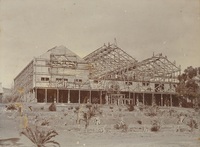 Grahamstown exhibition pavilion being built Photograph album : assembled and donated by L.A. Hewson / photographer/s mostly unknown. Donated by L.A. Hewson (Deposit 154)