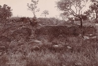 [Illegible] abandoned fort on the frontier Photograph of an abandoned fort, possibly in the Eastern Cape, with a boy in the foreground