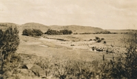 View of Boomplaats Farm, showing the stream Photograph of Boomplaats Farm, near Jagersfontein, site of the Voortrekkers defeat by the British.