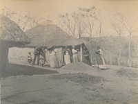Woman tending to her garden Photograph of a woman in the garden, "possibly Helen" -