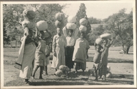 Group of people carrying pumpkins A group of women and children carrying pumpkins on their heads
