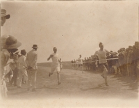 Possible re-enactment of the 1912 Olympic athletic race Photograph of four men involved in Olympic athletic race