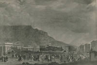 The Anti Convict Meeting Drawing of a meeting of the Anti-Convict Association held in Cape Town, South Africa, on 4 July 1849.