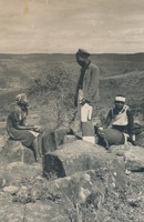 Taken from the Valley of Cry: the beloved country A photograph of two women sitting on the rocks with a man standing