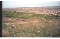Desecrated Swartkops River Valley Once covered in mixed bush. The Vanderkemp Kloof gash in western escarpment at Bethelsdorp in right distance. Built-up area centrally. A remnant of natural veld in foreground, itself badly treated.