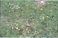 Cotswold Park, Newton Park, Port Elizabeth Nature of the green on which wild flowers appear seasonally. The small blue flowers in the foreground are Babania patersoniae of which there where many such patches over the green. In the left background are patches of Tritonia lineata.